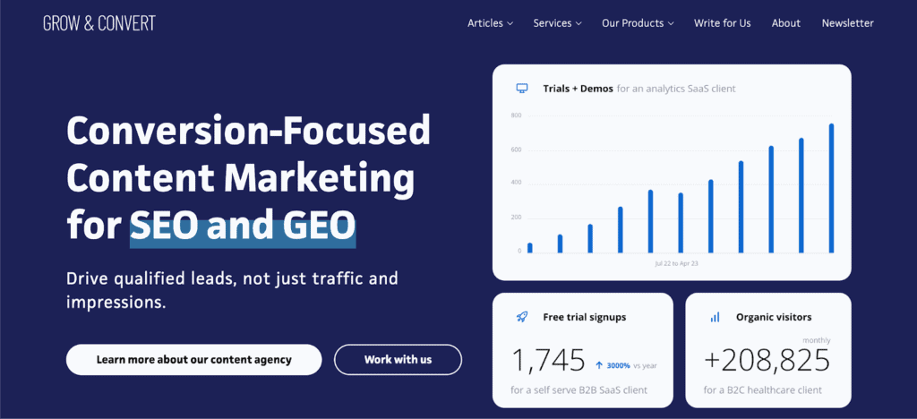 12. Grow and Convert – High-Intent Content Marketing That Turns Traffic Into Qualified Leads