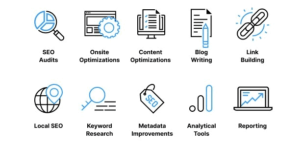 - Content marketing: Blog posts, landing pages, and other content writing and optimization services.
